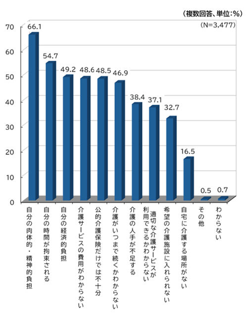親などを介護する場合の不安の内容は次の通りです。